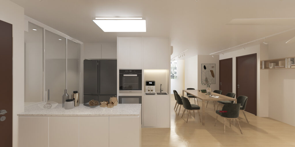 We will propose rendering points for the project. It will include one draft of a rendered space, for client to review the theme, colors, lighting and materials.